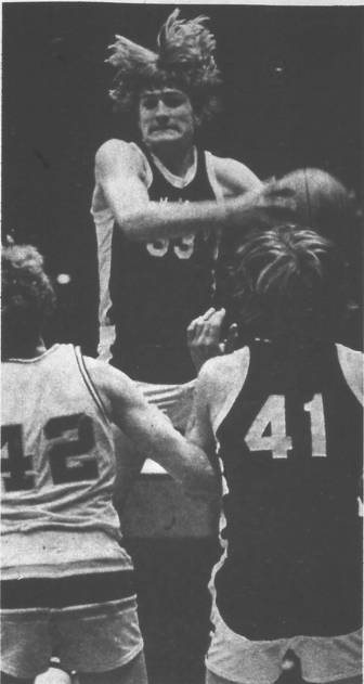 WIAA State Semi-Final – Park Falls vs. Winneconne – John Hall shooting. David Greenwood and Dan Gehrman look on. March 17, 1978