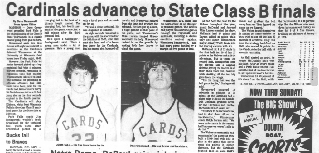 WIAA State Semi Final – Park Falls vs. Winneconne – March 17, 1978 – Dan Gehrman & David Greenwood